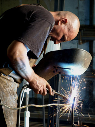 My time stick figures are created as open editions: they grow out of innumerable, small steel shreds, the segments form, condense in the forging process and stand symbolically for all Forms of dialogue. Everything is collected and transformed in the future, the totality of approaches and sensations form the figure. My artistic work is characterized by finding, collating and ciphering. I position the scrap finds in new entities. Material from the working process such as ashes, coal or sand complement pictorial bodies and assemblages.